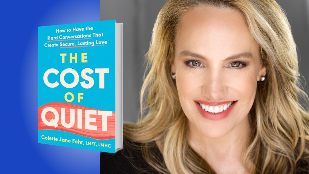 These ideas come from The Cost of Quiet: How to Have the Hard Conversations That Create Secure, Lasting Love by Colette Jane Fehr, a licensed psychotherapist specializing in couples’ therapy and co-host of Insights from the Couch. Pick up a copy of the book or check out six of her big ideas below.