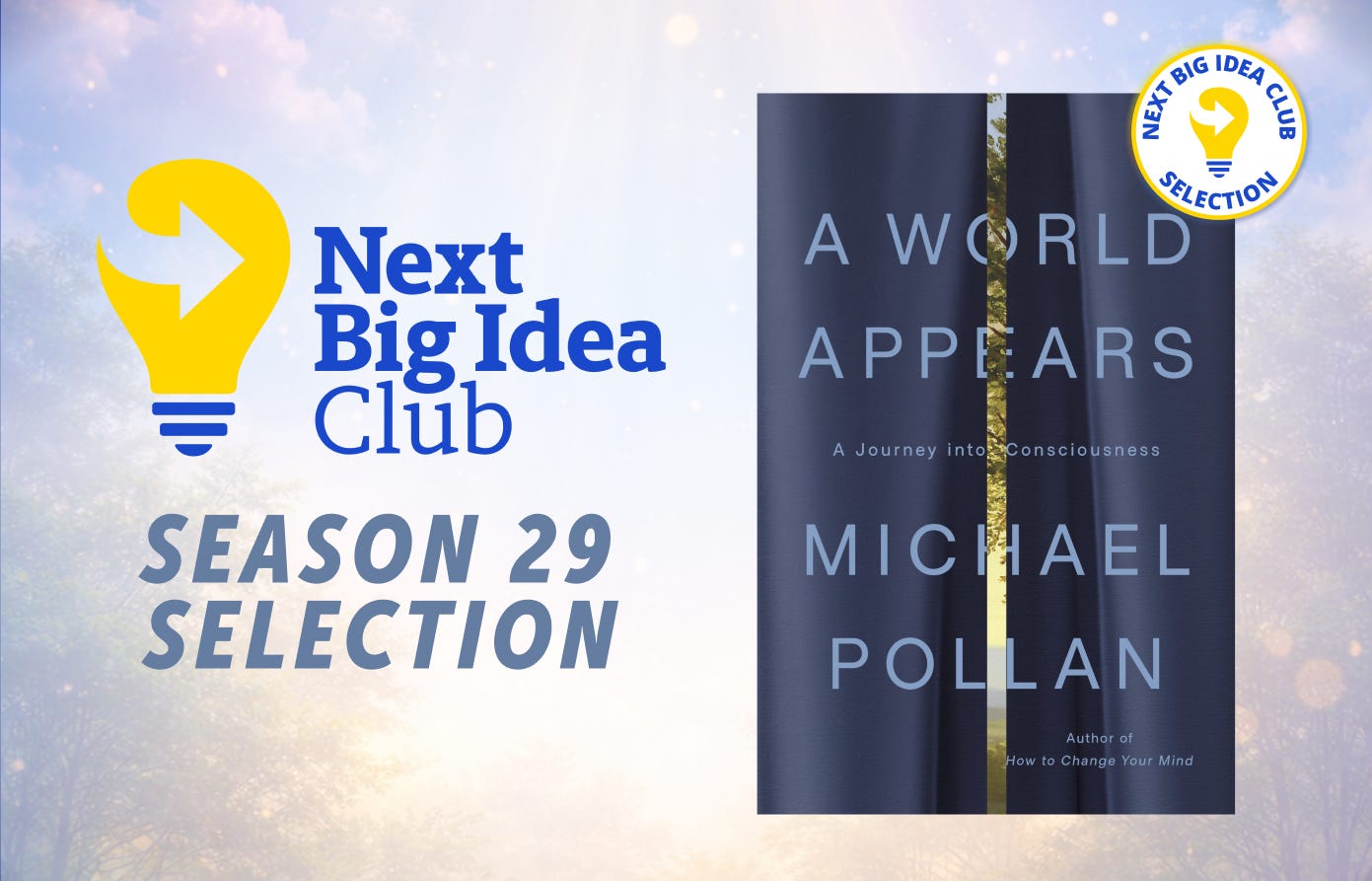 Our next book club selection is A World Appears: A Journey into Consciousness by Michael Pollan. That means if you’re a Next Big Idea Club Executive (Hardback) Member of the Club, we’ll send you the book as soon as it’s published and invite you to a private Q&A with Michael.