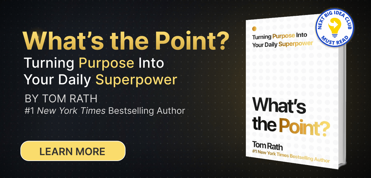 This week’s Book of the Day sponsor is What’s the Point? by Tom Rath, author of StrengthsFinder 2.0 and other #1 bestsellers. It’s a clear, actionable framework for making purpose the engine of your work, relationships, and daily life.