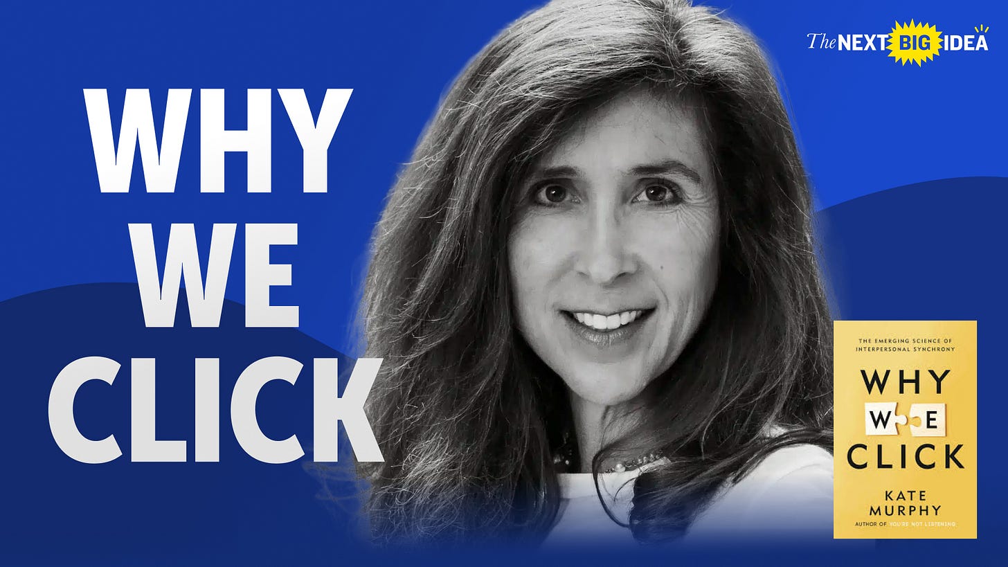 You know that feeling when you meet someone and something just … clicks? Scientists have a name for it. They call it “interpersonal synchrony.” Turns out we subconsciously mimic other people’s movements, postures, facial expressions, and gestures. We even sync involuntary functions like heart rate, blood pressure, brain waves, pupil dilation, and hormonal activity. Kate Murphy, author of the forthcoming book Why We Click, says interpersonal synchrony — syncing for short — is our superpower. But there’s a catch. The same instinct that bonds us can also hijack us.
