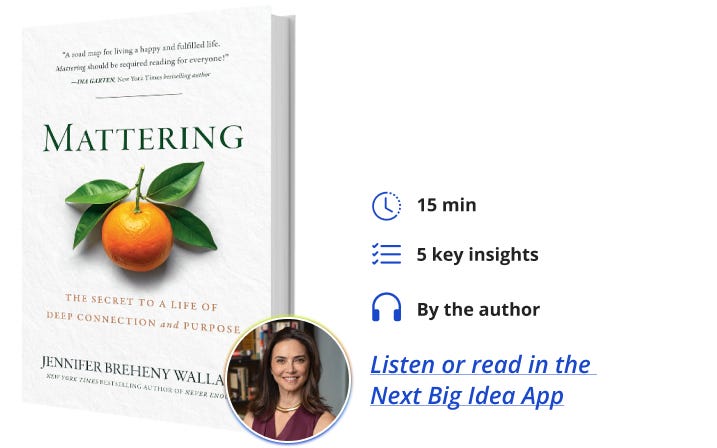 Jennifer Breheny Wallace is a journalist who began her career at CBS’s 60 Minutes and is now a contributor to The Wall Street Journal and The Washington Post. Her New York Times bestselling book Never Enough was named an Amazon Best Book of the Year, and her new book is Mattering: The Secret to a Life of Deep Connection and Purpose. Check out her summary on the Next Big Idea app.