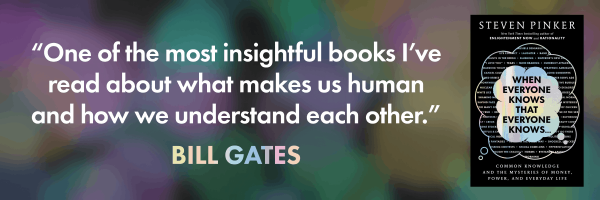 This week, Book of the Day is brought to you by two-time Pulitzer Prize finalist and Harvard Professor of Psychology Steven Pinker. In his newest book When Everyone Knows That Everyone Knows…, Steven invites us to understand the ways we try to get into each other’s heads and the harmonies, hypocrisies, and outrages that result. Pick up your copy today.