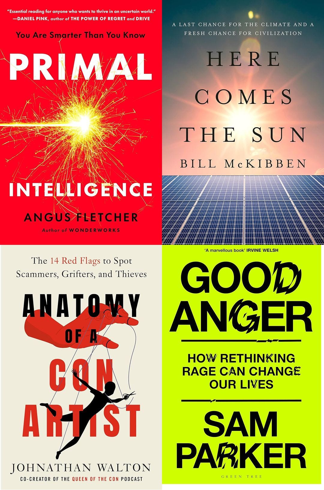 Four new books hit bookstores this week that have earned the Next Big Idea Club Must-Read seal of approval. Check out Primal Intelligence by Angus Fletcher, Here Comes the Sun by Bill McKibben, Anatomy of a Con Artist by Johnathan Walton, and Good Anger by Sam Parker.